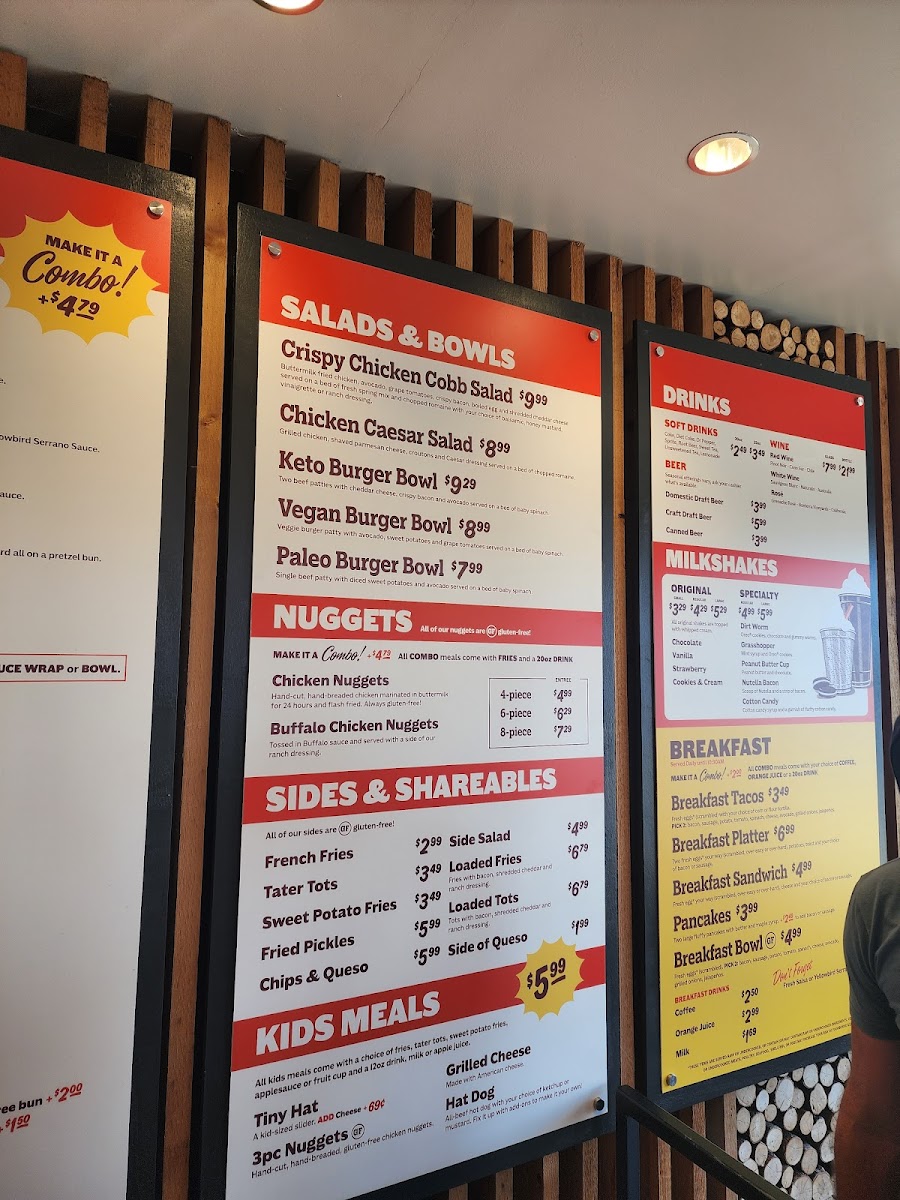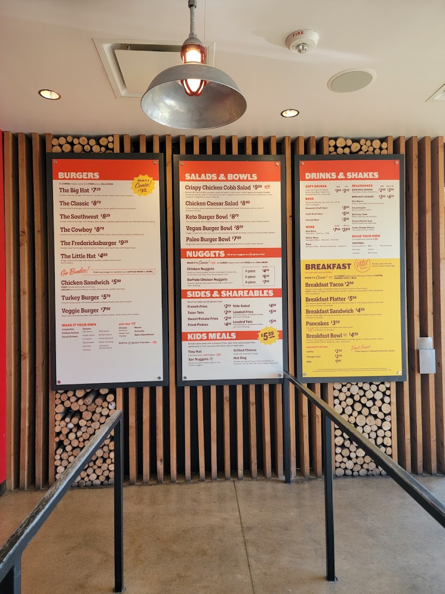 Welcome to Hat Creek Burger Company - Allen, a delightful culinary destination located at 555 E Exchange Pkwy, Allen, TX. This family-friendly eatery shines with its mouthwatering menu, featuring standout items like the Peaches & Cream shake and the hearty Pancake Big Hat. Priced at $9.49, this dish, available as a combo with seasoned fries and a 20oz drink, is perfect for breakfast lovers looking to indulge.